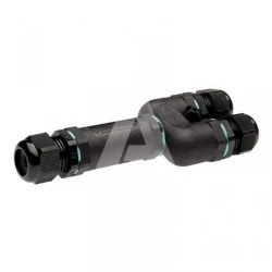 Złącze TEETUBE "Y" THB.399.D6A jest przeznaczone dla przewodów o przekroju od 0,5 do 1,5 mm², oferując prąd znamionowy 32 A przy napięciu znamionowym 450 V. Posiada stopień ochrony IP68, zapewniający pełną szczelność.
