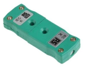 Wtyk miniaturowy z kodem kolorowym RS PRO IEC, wbudowany termowtyk i gniazdo. Z RS PRO para złączy termopary składająca się z miniaturowego wtyku termopary w linii i złącza gniazda termopary. Złącza termopary są idealne do podłączenia sondy termopary lub końcówek przewodów do przedłużacza lub kabli kompensacyjnych, a także do szybkiej, bezpiecznej i bezbłędnej wymiany istniejących termopar. Obudowy złączy są wykonane z wytrzymałego, szklanego tworzywa termoplastycznego, odpornego na uderzenia i odpornego na wysokie temperatury do 220°C. Zaciski wtyczki mają płaską konstrukcję i są polaryzowane, aby zapewnić dokładne połączenie przy połączeniu z gniazdem żeńskim. Obudowy tych miniaturowych złączy termopary są oznaczone kolorami IEC, a typ termopary jest wyraźnie wskazany z przodu, co ułatwia ich identyfikację. Co to jest złącze termopary?. Złącza termopary stanowią dokładny i wygodny sposób połączenia elementów pomiarowych temperatury. Dzięki tym złączom można utworzyć łańcuch od końcówki pomiarowej czujnika temperatury do komputera głównego lub miernika. Ważne jest, aby wszystkie elementy łańcucha były wykonane z tego samego materiału termopary, aby zapobiec jakiejkolwiek zmianie lub zniekształceniu oryginalnego sygnału. Aby to osiągnąć, złącza termopary mają styki wykonane z tego samego materiału, co termopara, które są używane do połączenia lub materiał kompensacyjny. Obudowa złącza posiada rodzaj termopary, na którym jest wyraźnie nadrukowany, a także jest oznaczona kolorami, aby ułatwić identyfikację. Złącze jest otwarte w górę, a przewody termopary są po prostu wkręcone na miejsce za pomocą dwóch zacisków śrubowych. Charakterystyka i zalety. styki wykonane ze stopów termopary lub materiału kompensacyjnego do dokładnego przesyłania sygnału Kolorowe oznaczenia IEC umożliwiają szybką i łatwą identyfikację Zlutowane styki ze stykami płaskimi zapewniające dokładne połączenie Wytrzymałe tworzywo termoplastyczne wykonane ze szkła Wytrzymałość wysokiej temperatury 220°C. Do stosowania z przewodami linkowymi lub litymi Akceptuje się kabel termopary o średnicy do 4 mm Proste złącze zaciskowe do szybkiego montażu biegunowość i typ termopary wyraźnie oznaczone na obudowach. Zastosowania. Miniaturowe wtyczki i gniazda są używane w każdym zastosowaniu, w którym termopary są instalowane, przedłużane lub wymieniane. Ich solidna konstrukcja sprawia, że miniaturowe złącza termopary są idealne do użytku nawet w najbardziej wymagających zastosowaniach pomiarowych temperatury. Akcesoria. Z tym gniazdem termopary można używać zacisku przewodu, patrz numer katalogowy ; 236-4104 236-4104