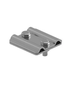Służy do łączenia kolejnych odcinkow drutu odgromowego na dachu. Złącze składa się z 2 części o grubości 2 mm, skręcanych ze sobą za pomocą 2 śrub M8. Do połączenia drutu miedzianego ze stalowym należy zastosować wersję mosiężną 90700110.
