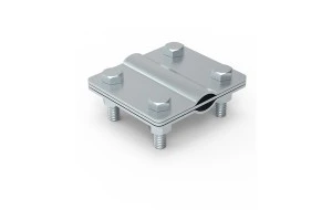 Służy do połączenia pręta uziomowego z drutem odgromowym. Złącze składa się z 3 części o grubości 2 mm, skręconych ze sobą za pomocą 4 śrub M8.