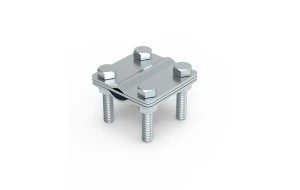 Służy do połączenia pręta uziomowego z drutem odgromowym. Złącze składa się z 3 części o grubości 2 mm, skręconych ze sobą za pomocą 4 śrub M8.