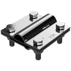 Złącze uziomowe odgromowe 3P KM GROM służy do pewnego łączenia uziomów z bednarką lub drutem odgromowym, przy użyciu czterech śrub M8.