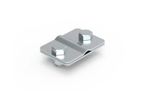 Służy do łączenia drutu odgromowego z bednarką lub bednarki z bednarką. Złącze składa się z 2 części o grubości 3 mm, skręcanych ze sobą za pomocą 2 śrub M8