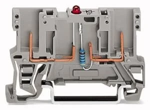 Złączki szynowe z elementami elektronicznymi