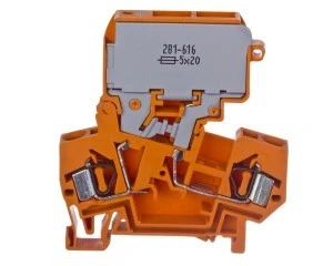 Złączka bezpiecznikowa 4mm2 10A G 5x 20mm bez sygnalizacji przepalenia wkładki pomarańczowa 281‑616 /50szt./