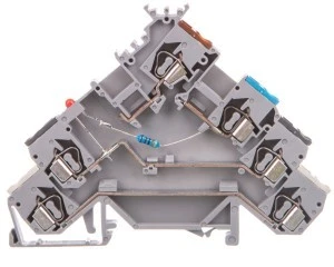 Złączki szynowe z elementami elektronicznymi