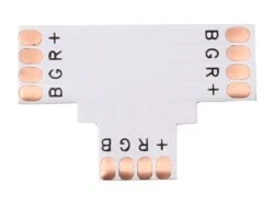 Złączka do taśmy led rgb 10mm PCB T, umożliwia szybkie i bezpieczne połączenie ze sobą taśm LED RGB o szerokości 10mm. Produkt cechuje się wysoką jakością wykonania, co gwarantuje długotrwałą i niezawodną pracę systemu oświetleniowego.