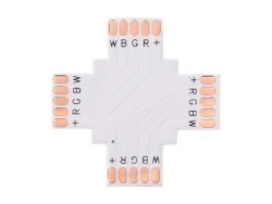 Złączka do taśmy led rgbw 10mm PCB X, umożliwia szybkie i bezpieczne połączenie ze sobą taśm LED RGBW o szerokości 10mm. Produkt cechuje się wysoką jakością wykonania, co gwarantuje długotrwałą i niezawodną pracę systemu oświetleniowego.