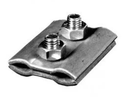 Materiał: stop aluminium AlMgSiZastosowanie: instalacja odgromowa, jako złącze dwuśrubowe umożliwiające równoległe łączenie drutu odgromowego fi 8-10mm. Wymiary: 50mm x 40mmNormy: PN-EN 62305-3:2011, PN-EN 62561-1:2017-07Cena dotyczy 1 sztuki.