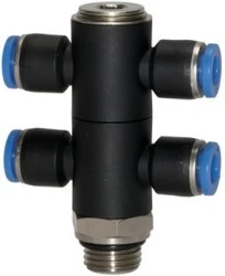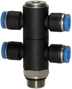 Złączka pneumatyczna wtykowa banjo podwójna G 3/8 GZ do węża fi 8 mm, tworzywo sztuczne