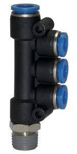Złączka pneumatyczna wtykowa banjo podwójna R 1/4 GZ do węża fi 4 x 6 mm, tworzywo sztuczne