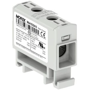 Złączka szynowa 1-torowa to uniwersalny element przyłączeniowy przeznaczony do bezpiecznego łączenia przewodów miedzianych i aluminiowych o przekrojach od 2,5 do 35 mm², montowany na szynie DIN TH-35.