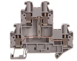 Złącze 2-poziomowe, z łącznikiem potencjału, napięcie znamionowe: 800 V, prąd znamionowy: 30 A, rodzaj przyłącza: Przyłącze śrubowe, Przekrój znamionowy: 4 mm², przekrój: 0,14 mm² - 6 mm², rodzaj montażu: NS 35/7,5, NS 35/15, kolor: szary