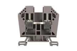 Złączka szynowa gwintowa w kolorze szarym przeznaczona do montażu na standardowej szynie DIN 35 mm. Podobnie jak inne złączki tego typu służy do wykonywania połączeń przewodów miedzianych i aluminiowych pod względem elektrycznym i mechanicznym. Może być wykorzystana zarówno w przypadku drutów jak i linek o wskazanym przekroju. Złączki szynowe posiadają korpus wykonany z tworzywa sztucznego. Do jego właściwości należy wysoka odporność mechaniczna, ogniowa i wyjątkowa trwałość. Specjalnie zaprojektowana konstrukcja zacisków zapobiega obluzowaniu się przewodów, dlatego połączenia wykonane za pomocą złączek szynowy gwintowych są pewne i trwałe. Złączki szynowe pochodzą z bogatej oferty produktowej firmy EM Group. Podobnie jak inne produkty elektroinstalacyjne tej firmy charakteryzują się wysoką jakością materiałów i zastosowanych rozwiązań.