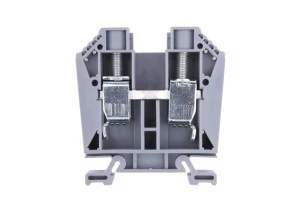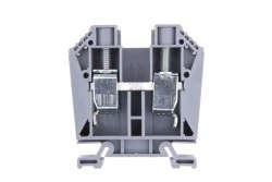 Złączka szynowa gwintowa w kolorze szarym, która jest wykorzystywana do łączenia przewodów drutowych i linkowych. Przeznaczona jest do montowania na szynie DIN 35 mm. Posiada wykonanie przeciwwybuchowe 'Eex e'. Złączki tego typu służą do łączenia przewodów w instalacjach i urządzenia elektrycznych oraz układach automatyki.