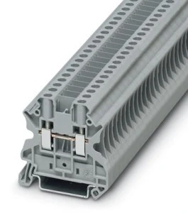 Złączka przelotowa, Uwaga! Do stosowania mostków należy usunąć ściankę z otworów na mostki., z wyłamywaną ścianką oddzielającą w otworze na mostek, napięcie znamionowe: 1000 V, prąd znamionowy: 32 A, rodzaj przyłącza: Przyłącze śrubowe, Przekrój znamionowy: 4 mm², przekrój: 0,14 mm² - 6 mm², rodzaj montażu: NS 35/7,5, NS 35/15, kolor: szary