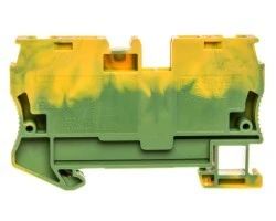 Zacisk przewodu ochronnego, ilość przyłączy: 2, rodzaj przyłącza: zaciski sprężynowe, 1. poziomowe, przekrój: 0,2 mm² - 10 mm², rodzaj montażu: NS 35/7,5, NS 35/15, kolor: zielono-żółty