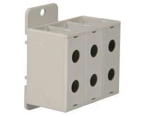 Uniwersalna złączka śrubowa ZGX, trzybiegunowa z sześcioma otworami, w kolorze szarym, dla przewodów o przekroju od 1,5 do 35 mm2, w kompaktowej obudowie o małych wymiarach, wykonanej z tworzywa PA6 bez halogenowego, sklasyfikowanego w najwyższym standardzie palności UL V-0 (test pionowego palenia), możliwy montaż złączki zarówno na szynie TH jaki i bezpośrednio na płycie montażowej, z zaciskami na śrubę sześciokątną, które pozwalają na łatwe i mocne dokręcanie przewodu, złączka posiada grawerowaną informacje o: parametrach elektrotechnicznych oraz zalecanych momentach dokręcania. Złączki ZGX są testowane i certyfikowane zgodnie z normą EN 60947-7-1:2012.