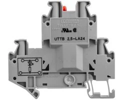 Złącze rzędowe elementów kontr., Napięcie determinowane jest przez wybraną wersję wskaźnika świetlnego., napięcie znamionowe: 24 V, prąd znamionowy: 24 A, rodzaj przyłącza: Przyłącze śrubowe, Przekrój znamionowy: 2,5 mm², przekrój: 0,14 mm² - 4 mm², rodzaj montażu: NS 35/7,5, NS 35/15, kolor: szary