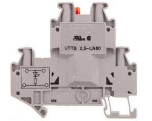 Złącze rzędowe elementów kontr., Napięcie determinowane jest przez wybraną wersję wskaźnika świetlnego., napięcie znamionowe: 60 V, prąd znamionowy: 24 A, rodzaj przyłącza: Przyłącze śrubowe, Przekrój znamionowy: 2,5 mm², przekrój: 0,14 mm² - 4 mm², rodzaj montażu: NS 35/7,5, NS 35/15, kolor: szary