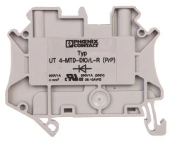 Złącze rzędowe elementów kontr., Prąd maks. określany jest przez diodę. Wbudowane: dioda 1N 4007, napięcie zaporowe: 1300 V, długotrwały prąd graniczny: 0,5 A., z wbudowaną diodą, napięcie znamionowe: 800 V, prąd znamionowy: 0,5 A, rodzaj przyłącza: Przyłącze śrubowe, Przekrój znamionowy: 1 mm², przekrój: 0,14 mm² - 6 mm², rodzaj montażu: NS 35/7,5, NS 35/15, kolor: szary