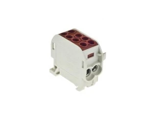 Złączka Szynowa - Blok rozdzielczy - odgałęźny Al/Cu o prądzie znamionowym 125A/202A oraz napięciu znamionowy:1000V Bloki Rozdzielczy jednopolowyo przekroju 1x35/2x25 mm2w kolorze brązowym . Moduły przystosowane do łączenia ze sobą
