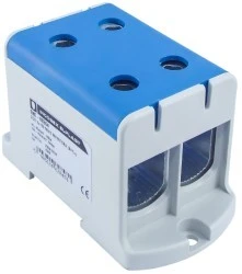 Uniwersalna złączka śrubowa ZGX, jednobiegunowa z czterema otworami, w kolorze niebieskim, dla przewodów o przekroju od 35 do 150 mm2, w kompaktowej obudowie o małych wymiarach, wykonanej z tworzywa PA6 bez halogenowego, sklasyfikowanego w najwyższym standardzie palności UL V-0 (test pionowego palenia), możliwy montaż złączki zarówno na szynie TH jaki i bezpośrednio na płycie montażowej, z zaciskami na śrubę sześciokątną, które pozwalają na łatwe i mocne dokręcanie przewodu. Złączki ZGX są testowane i certyfikowane zgodnie z normą EN 60947-7-1:2012 oraz EN 61238-1.