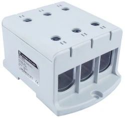 Uniwersalna złączka śrubowa ZGX, jednobiegunowa z sześcioma otworami, w kolorze szarym, dla przewodów o przekroju od 35 do 150 mm2, w kompaktowej obudowie o małych wymiarach, wykonanej z tworzywa PA6 bez halogenowego, sklasyfikowanego w najwyższym standardzie palności UL V-0 (test pionowego palenia), możliwy montaż złączki zarówno na szynie TH jaki i bezpośrednio na płycie montażowej, z zaciskami na śrubę sześciokątną, które pozwalają na łatwe i mocne dokręcanie przewodu. Złączki ZGX są testowane i certyfikowane zgodnie z normą EN 60947-7-1:2012 oraz EN 61238-1.