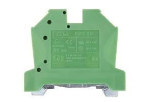 Złączka szynowa ochronna w kolorze żółto-zielonym, która charakteryzuje się zamkniętym korpusem. Służy do zamontowania na szynie montażowej DIN 35 mm. Złączki szynowe stosowane są do pewnego i bezpiecznego łączenia przewodów. Znajduje zastosowane w instalacjach elektrycznych oraz automatyce przemysłowej. Nadaje się zarówno do drutów jaki i linek.