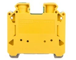 Zacisk przewodu ochronnego, ze stopą mocowaną śrubami, ilość przyłączy: 2, rodzaj przyłącza: Przyłącze śrubowe, Przekrój znamionowy: 16 mm², przekrój: 1,5 mm² - 25 mm², rodzaj mocowania: Nóżka PE ze śrubą mocującą, M4, rodzaj montażu: NS 35/7,5, NS 35/15, kolor: zielono-żółty