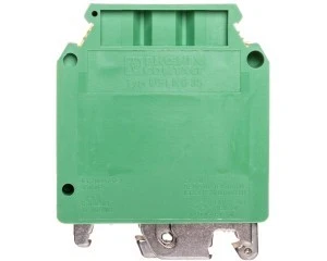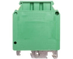 Zacisk przewodu ochronnego, Dla przekrojów przyłącza 35 mm² / AWG 2 zastosować szynę nośną Cu NS 32... lub NS 35...! Dla przekrojów przyłącza > 35 mm² / AWG 2 zastosować szynę nośną Cu NS 32... lub NS 35...! Przy ustawieniu w jednym rzędzie ze złączami przelotowymi konieczne jest nałożenie pokrywy przy napięciu izolacji >690 V, ilość przyłączy: 2, rodzaj przyłącza: Przyłącze śrubowe, Przekrój znamionowy: 35 mm², przekrój: 0,75 mm² - 50 mm², rodzaj mocowania: Nóżka PE ze śrubą mocującą, M5, rodzaj montażu: NS 35/7,5, NS 35/15, NS 32, kolor: zielono-żółty