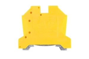 Żółto-zielona złączka szynowa ochronna gwintowa z zamkniętym korpusem. Służy do wykonywania w sposób pewny pod względem mechanicznym i elektrycznym połączeń przewodów. Wykorzystywana jest w instalacjach elektrycznych oraz układach automatyki. Może łączyć przewody drutowe i linkowe o określonym przekroju. Przeznaczona jest do montażu na szynie DIN 35 mm.