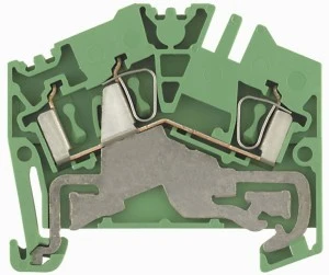 Złączka szynowa ochronna ZPE 2.5-2 przeznaczona do przyłączania przewodów ochronnych w rozdzielnicach i szafach sterowniczych; typ jednopoziomowy z zaciskiem sprężynowym, montowana na szynie DIN 35 mm. Stosowana tam, gdzie wymagany jest dedykowany tor ochronny o przekroju pomiarowym 2,5 mm?.