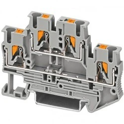 Złączka szynowa przelotowa 2-poziomowa PTTB 2,5 to kompaktowe złącze typu Push-in do przewodów o przekroju 0,14–4 mm², przystosowane do pracy przy prądzie znamionowym 22 A i napięciu 500 V.