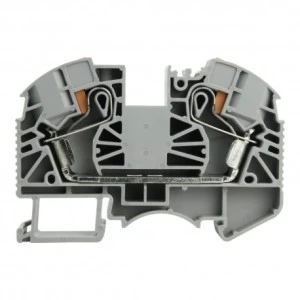 Złączka szynowa 10mm2 1P zacisk sprężynowy szara UL⭐⭐⭐⭐⭐Instalacja elektryczna złożona z wielu przewodów musi zapewniać ciągłość przepływu prądu w obwodzie. Złączki przelotowe są montowane na szynie DIN TH/TS 35 i umożliwiają łączenie przewodów oraz ich mostkowanie. Złączki szynowe serii DS10 umożliwiają szybkie i wygodne łączenie przewodów o przekroju 0.5 - 10mm2 (20 - 6 AWG) przy pomocy zacisków sprężynowych. Obudowy złączek zostały wykonane z wysokojakościowych tworzyw sztucznych PA66 oraz UL94V-0. Wszystkie elementy metalowe w złączce zostały wykonane z powlekanego stopu miedzi. Złączki szynowe DEGSON przeszły wiele testów potwierdzających ich jakość i wytrzymałość. Złączkom został przyznany certyfikat normy UL.➡️ Cechy złączki szynowej DS10:✔️ zaciski sprężynowe - prosty i szybki montaż przewodów✔️ montaż na szynie DIN 35✔️ napięcie znamionowe 1000 V✔️ prąd znamionowy 57 A✔️ przekrój przewodów 0,5 - 10 mm2 (20 - 6 AWG)✔️ certyfikacja UL (nr. E228872)✔️ kolor szary✔️ wysokiej jakości materiał✔️ zaciski ze stopu miedzizastosowaniezłącze zaciskowe na przewody z zaciskiem sprężynowymtyp złączkiszynowailość torów1ilość zacisków2montaż na szynie DIN 35takmontaż elektrycznyzacisk sprężynowywykonanieklatka z wysokogatunkowej stalimax. przekrój przewodu0.5 - 10mm2napięcie znamionowe1000Vprąd znamionowy57Azasięg drutu20 - 6 AWG0.5 - 10mm2długość zdejmowania izolacji16-18 mmtemperatura pracyod -40℃ do + 105℃wymiarypodstawowy kolor złączaszarycertyfikat UL 1059nr. E228872deklaracja zgodności CEtakdyrektywa RoHstakakcesoriaOznaczniki na złączki - ZB10-10PMostek wtykowy - D-DS10-01Płytka końcowa - DFB10-02PDOSTĘPNE NA NASZYCH AUKCJACHSymbolDS10-01P-11-00A(H)EAN5907589333831