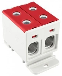 Uniwersalna złączka śrubowa ZGX, jednobiegunowa z czterema otworami, w kolorze czerownym, dla przewodów o przekroju od 1,5 do 50 mm2, w kompaktowej obudowie o małych wymiarach, wykonanej z tworzywa PA6 bez halogenowego, sklasyfikowanego w najwyższym standardzie palności UL V-0 (test pionowego palenia), możliwy montaż złączki zarówno na szynie TH jaki i bezpośrednio na płycie montażowej, z zaciskami na śrubę sześciokątną, które pozwalają na łatwe i mocne dokręcanie przewodu, złączka posiada grawerowaną informacje o: parametrach elektrotechnicznych oraz zalecanych momentach dokręcania. Złączki ZGX są testowane i certyfikowane zgodnie z normą EN 60947-7-1:2012.