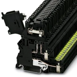 Zabezpieczający zacisk szeregowy, rodzaj zabezp.: Szkło/ceramika/..., typ bezpiecznika: G / 5 x 20, napięcie znamionowe: 24 V, prąd znamionowy: 6,3 A, rodzaj przyłącza: Przyłącze śrubowe, Przekrój znamionowy: 1 mm², przekrój: 0,14 mm²- 6 mm², rodzaj montażu: NS 35/7,5, NS 35/15, kolor: czarny