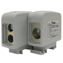 Złączka uniwersalna (Al/Cu) UTB 70/2x35 w kolorze szarym. Zakres połączeń wejściowych dla przewodów aluminiowych i miedzianych o przekroju od 16 mm2 do 70 mm2. Dwa wyjścia dla przewodów o przekroju od 6 mm2 do 35 mm2. Korpus złączki UTB wykonany jest z elektroprzewodzącego aluminium z powłoką galwaiczną, co zapewnia bezkolizyjne połączenie przewodów aluminiowych i miedzianych w jednym zacisku. W celu bezpiecznego łączenia jednodrutowych przewodów aluminiowych, część zaciskowa przewodu powinna być wypełniona specjalną pastą stykową, która rozbija warstwę oksydacyjną, zapobiega korozji elektrolitycznej i zapewnia długotrwałą ochronę. Główną zaletą złączki UTB jest duża zmienność połączeń z możliwością rozgałęzienia. Wymiary złączki są stosunkowo niewielkie, ponieważ gniazda przyłączeniowe są umieszczone jedno nad drugim, co zwiększa liczbę zacisków w rzędzie przy zachowaniu tego samego rozstawu szyn zaciskowych. Złączkę można mocować do szyny montażowej TH 35. Temperatura pracy złączek UTB wynosi od -25 °C do +100°C. Materiał obudowy poliamid PA. Złączka testowana zgodnie z IEC 60947-7-1.