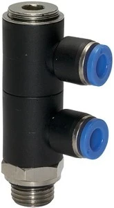 Złączka wtykowa podwójna typu banjo G 1/8 GZ do węża fi 4 mm, tworzywo sztuczne