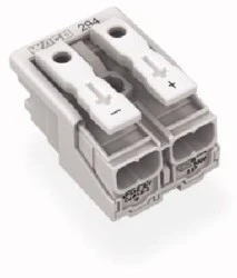 Złączka zasilająca 2‑biegunowa ze stopkąmi bez styku PE 294‑5072 /1000szt./