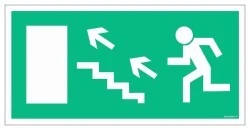 ZNAK - AC019 Wyjście ewakuacyjne w lewo schodami w górę 20 x 10 cm FS - Folia samoprzylepna foto.