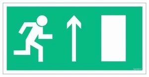 Znak Wyjście ewakuacyjne prawostronne prosto jest stosowany w budynkach użytku publicznego. Należy do oznakowania drogi ewakuacji, może być stosowany już w istniejących obiektach, jak również nowo powstałych. Znak Wyjście ewakuacyjne prawostronne prosto informuje o kierunku ewakuacji prosto, gdzie obowiązuje ruch prawostronny. Jest w kształcie prostokąta, ma zielone tło, jasne obramowanie i piktogramy.