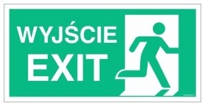 Znak Wyjście prawostronne Znak Wyjście prawostronne jest jednym z elementów oznakowania drogi ewakuacji w budynkach użytku publicznego. Przeznaczony jest do wyznaczania kierunku wyjścia z obiektu. Znak Wyjście prawostronne wskazuje również na konieczność poruszania się prawą stronę, co zdecydowanie usprawni całą akcję ewakuacyjną. Ponadto znak należy umieścić w widocznym miejscu, np. nad drzwiami, prowadzącymi do wyjścia. Znak Wyjście prawostronne jest w kształcie prostokąta. Na zielonym tle znajduje się biały napis Wyjście EXIT. Znak Wyjście prawostronne występuje w następujących formatach: 20 x 10 cm, 30 x 15 cm, 40 x 20 cm, 60 x 30 cm, 80 x 40 cm i 100 x 50 cm. Dostępny jest też w różnych opcjach w zależności od rodzaju podłoża. Są to: • Folia samoprzylepna fotoluminescencyjna • Płyta sztywna 1 mm fotoluminescencyjna • Płyta TD fotoluminescencyjna• Folia podłogowa fotoluminescencyjna
