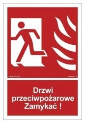 Znak PPOŻ „Drzwi przeciwpożarowe. Zamykać! Kierunek drogi ewakuacyjnej w lewo”Znak „Drzwi przeciwpożarowe. Zamykać! Kierunek drogi ewakuacyjnej w lewo” z certyfikatem CNBOP 3619/2019 przeznaczony jest do oznaczenia drogi ewakuacji, którą mają wyjść z budynku osoby przebywające w trakcie wybuchu pożaru. Sprawdzi się do zastosowania w nowych budynkach, jak też w celu wymiany istniejących już znaków PPOŻ. Znak PPOŻ „Drzwi przeciwpożarowe. Zamykać! Kierunek drogi ewakuacyjnej w lewo” należy umieścić na drzwiach przeciwpożarowych. Informuje on również, że drzwi należy zamknąć i kierować się dalej w lewo. Znak „Drzwi przeciwpożarowe. Zamykać! Kierunek drogi ewakuacyjnej w lewo” wykonany może być z następujących materiałów: • folia samoprzylepna fotoluminescencyjna – arkusz 9 naklejek • folia samoprzylepna – arkusz 9 naklejek • folia samoprzylepna fotoluminescencyjna• folia samoprzylepna• płyta sztywna 1mm• płyta sztywna 1mm fotoluminescencyjna• płyta TD fotoluminescencyjna• folia podłogowa• folia podłogowa fotoluminescencyjnaZnak „Drzwi przeciwpożarowe. Zamykać! Kierunek drogi ewakuacyjnej w lewo” może być w formacie 5 x 7,4 cm, 10 x 14,8 cm, 15 x 22,2 cm, 20 x 29,6 cm, 25 x 37 cm, 35 x 51,8 cm, 40 x 59,4 cm i 50 x 74 cm.