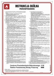 Instrukcja ogólna przeciwpożarowa Instrukcja ogólna przeciwpożarowa to gotowy zestaw postępowania, dzięki którym ryzyko wystąpienia pożaru zostaje maksymalnie ograniczone. To plansza, która wykorzystywana jest w miejscach użytku publicznego. Powinna znajdować się w miejscu dostępnym dla każdego, a także widocznym i najlepiej dobrze oznaczonym. Wszystkie informacje zostały przedstawione w sposób przejrzysty i zrozumiały, a numery alarmowe wyróżnione większą i pogrubioną czcionką. Instrukcja ogólna przeciwpożarowych dostępna jest w kilku wariantach, które różnią się materiałem wykonania. Są to: • Folia samoprzylepna• Płyta elastyczna 0,4 mm• Płyta sztywna 1 mmSą to materiały odporne na niekorzystny wpływ czynników środowiskowych, a także ułatwiające montaż na gładkiej powierzchni. Plansza ma wymiary 24,5 x 35 cm.