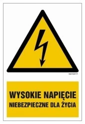 ZNAK ‑ HA004 Wysokie napięcie niebezpieczne dla życia 25 x 37,5 cm PN ‑ Płyta 1mm