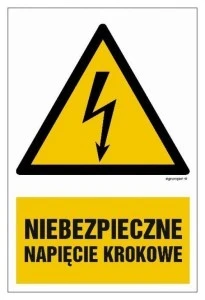 ZNAK ‑ HA014 Niebezpieczne napięcie krokowe 10 x 15 cm FN ‑ Folia samoprzylepna