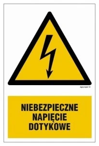 ZNAK ‑ HA015 Niebezpieczne napięcie dotykowe 25 x 37,5 cm FN ‑ Folia samoprzylepna