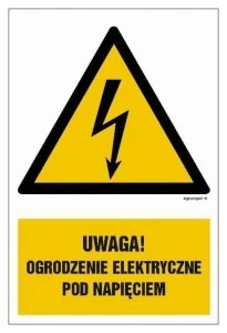 ZNAK ‑ HA020 Uwaga ogrodzenie elektryczne pod napięciem 30 x 45 cm PN ‑ Płyta 1mm