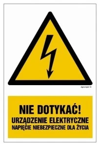 ZNAK - HA001 Nie dotykać! Urządzenie elektryczne 15 x 22,5 cm FN - Folia samoprzylepna